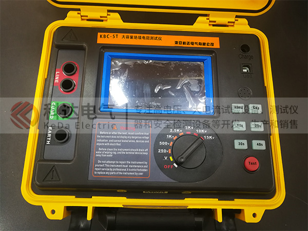 KBC-5T大容量絕緣電阻測(cè)試儀是我公司精心研發(fā)的一款大容量絕緣電阻測(cè)試儀,儀器擁有完善的各種絕緣電阻參數(shù)測(cè)試功能和卓越的抗干擾能力,能用于變電站等有強(qiáng)感應(yīng)電環(huán)境下特高壓、大容量高壓電氣設(shè)備、輸電線路絕緣電阻的測(cè)試。儀器采用真彩觸摸屏,所有測(cè)試數(shù)據(jù)及電池電量同屏顯示一目了然,旋鈕開(kāi)關(guān)和按鍵組合使得操作非常簡(jiǎn)單。儀器內(nèi)置了使用說(shuō)明書,用戶無(wú)需費(fèi)力記憶操作方法,點(diǎn)擊屏幕的“HELP”即可彈出操作方法,有效指引用戶操作儀器。儀器具有快速放電功能并自動(dòng)監(jiān)測(cè)被測(cè)物帶電電壓,電壓超過(guò)36V自動(dòng)禁止測(cè)試有效保護(hù)儀器和操作人員。