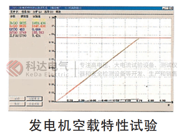 全套設備包括一臺筆記本電腦和一臺發(fā)電機特性測試儀,成套設備可以完成發(fā)電機空載特性試驗,發(fā)電機短路特性試驗,主勵磁機空載試驗,主勵磁機負載試驗,滅磁時間常數(shù)試驗,勵磁調(diào)節(jié)動態(tài)試驗,零起升壓、±10%階躍試驗,通道切換試驗、頻率特性試驗等。